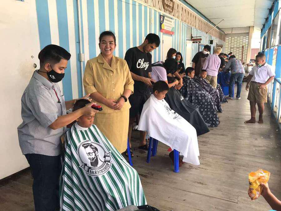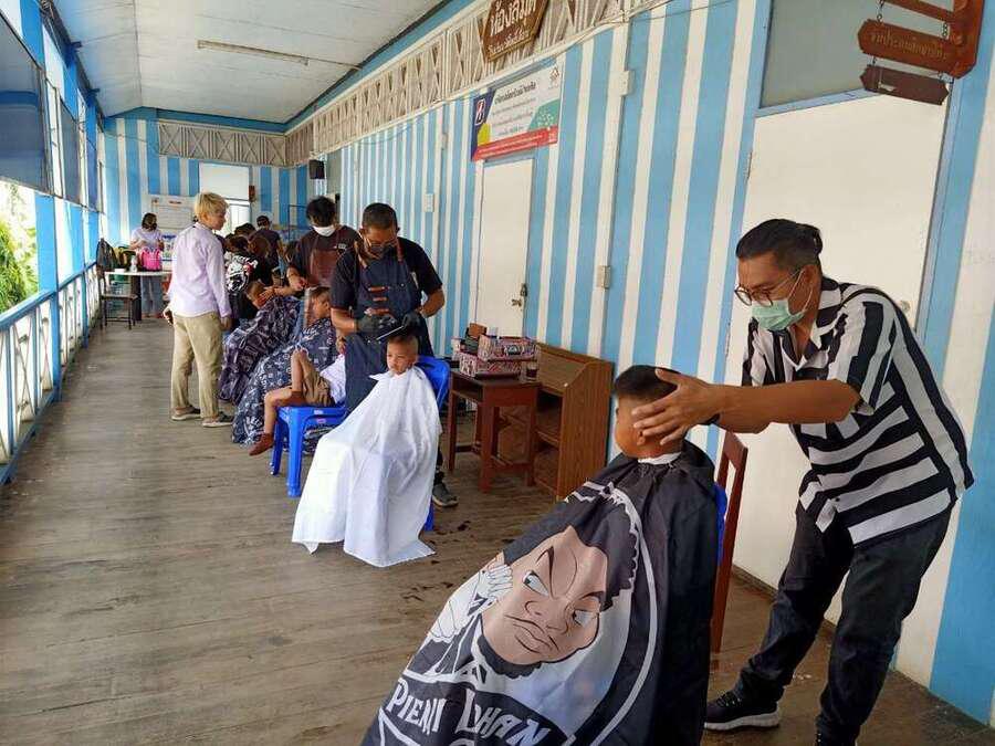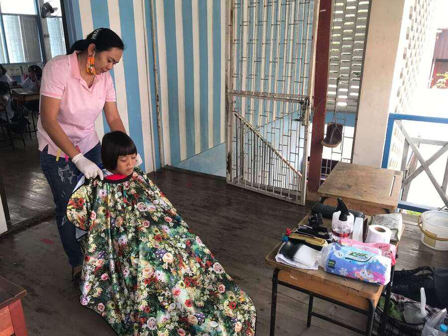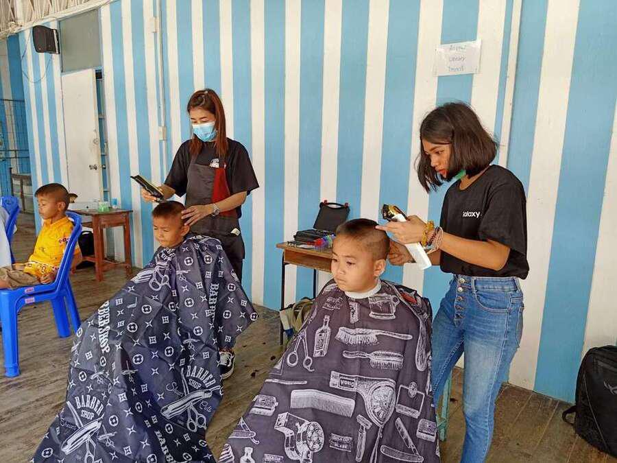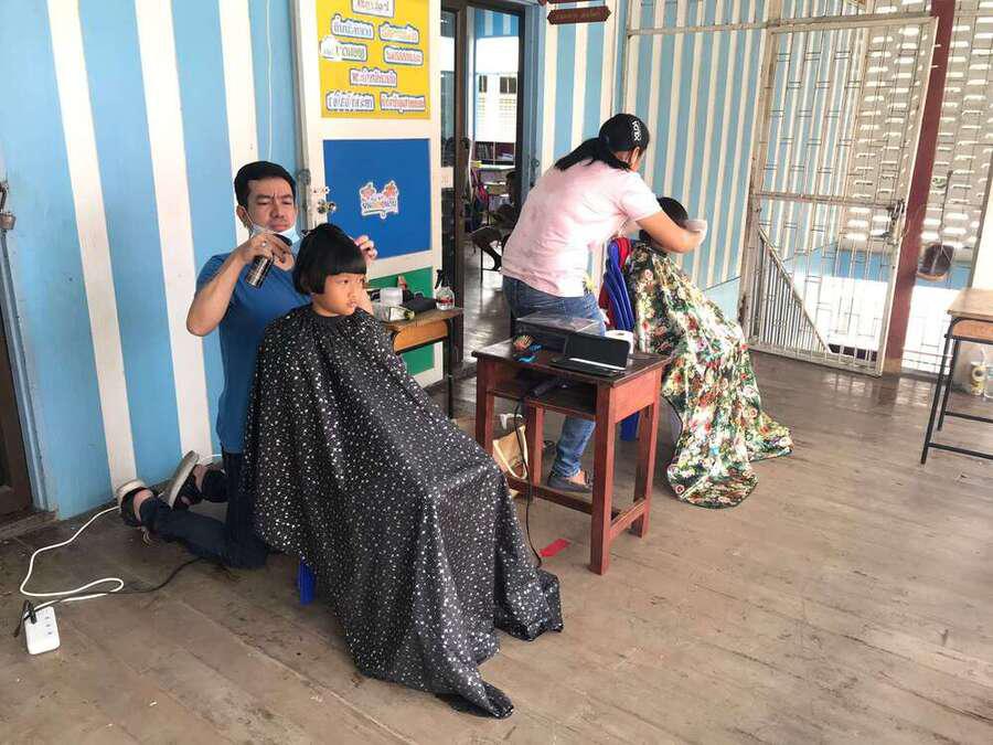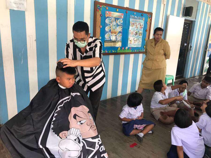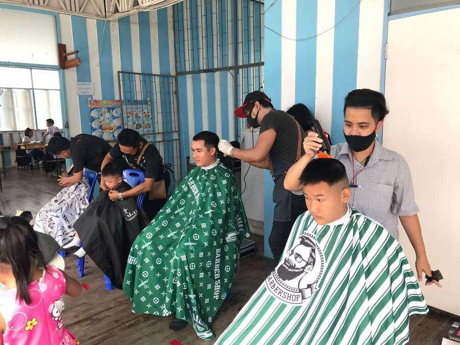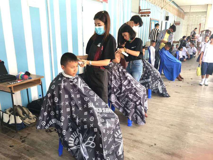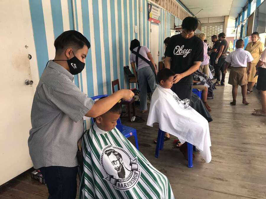 นักศึกษาที่เรียนตัดผมมาเป็นจิตอาสาตัดผมให้กับนักเรียน S:0