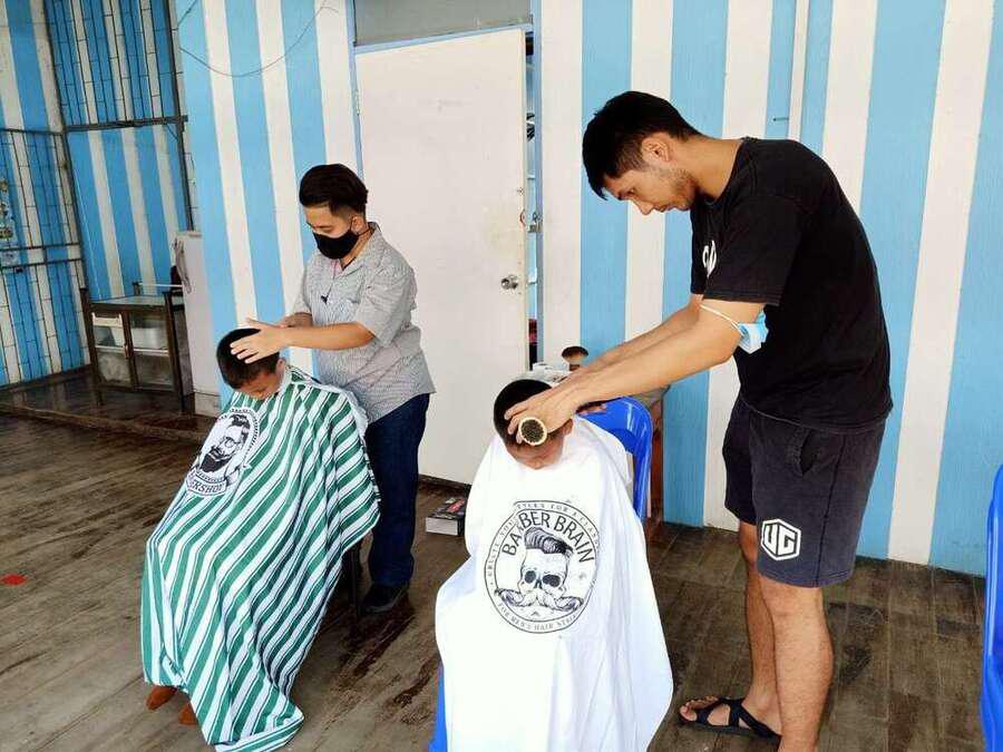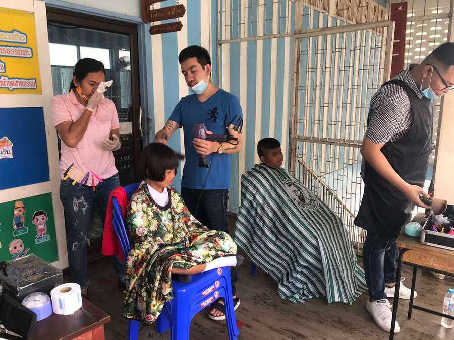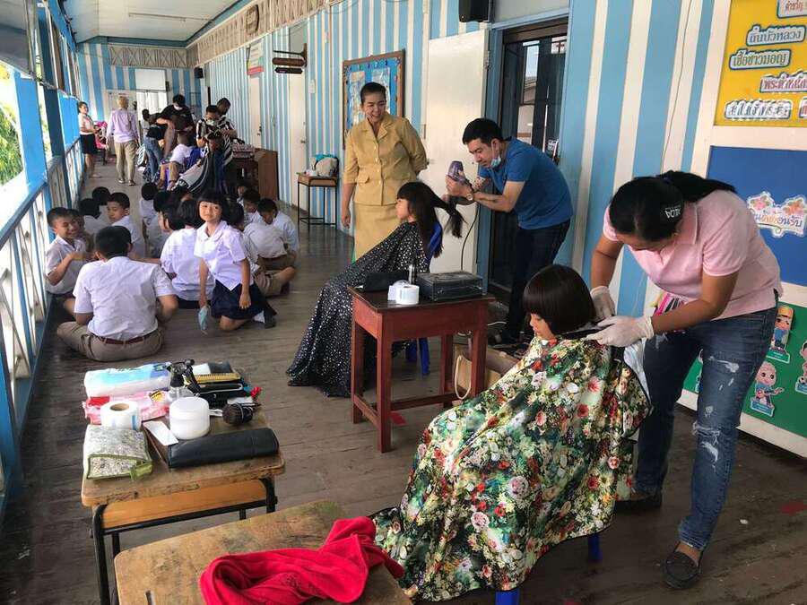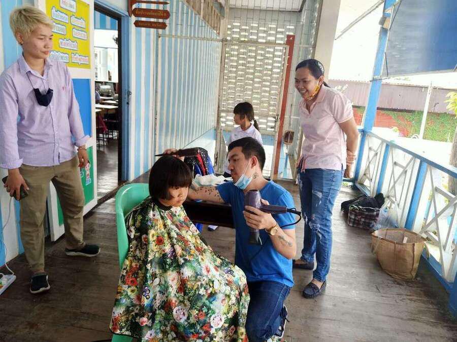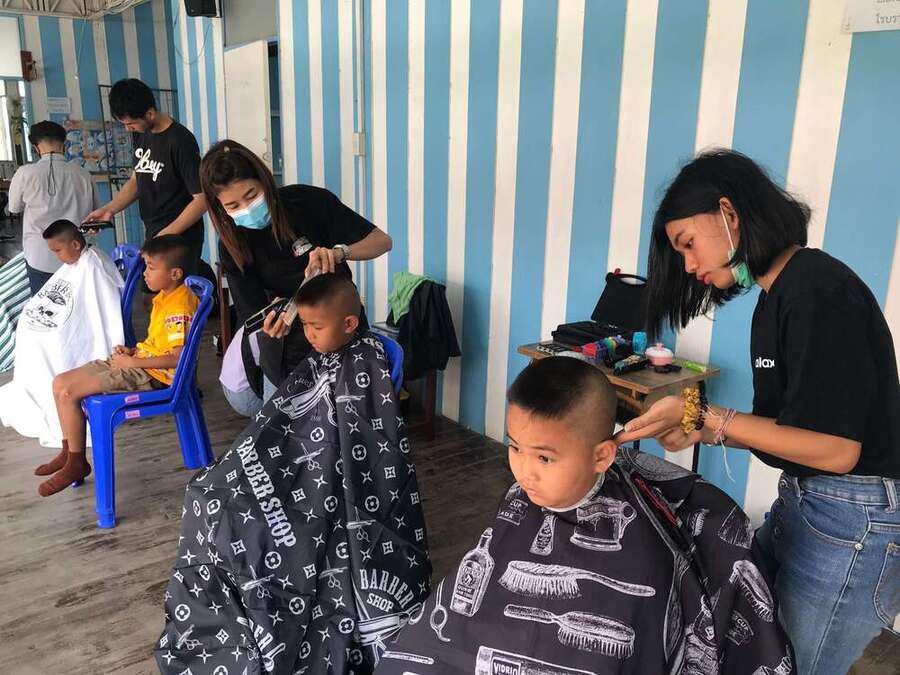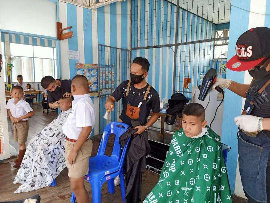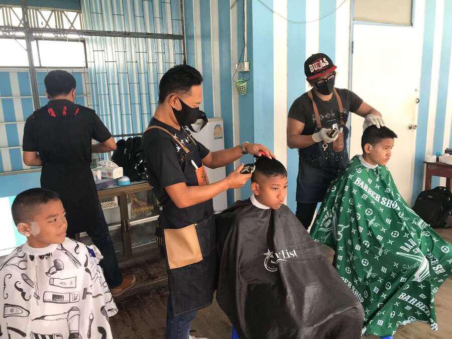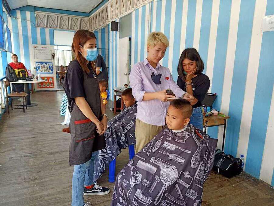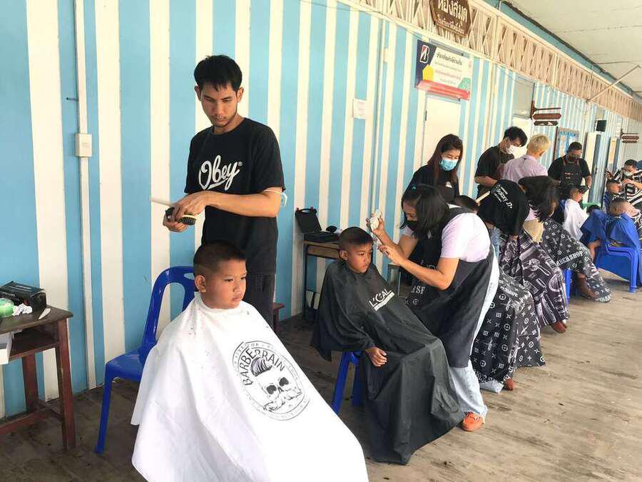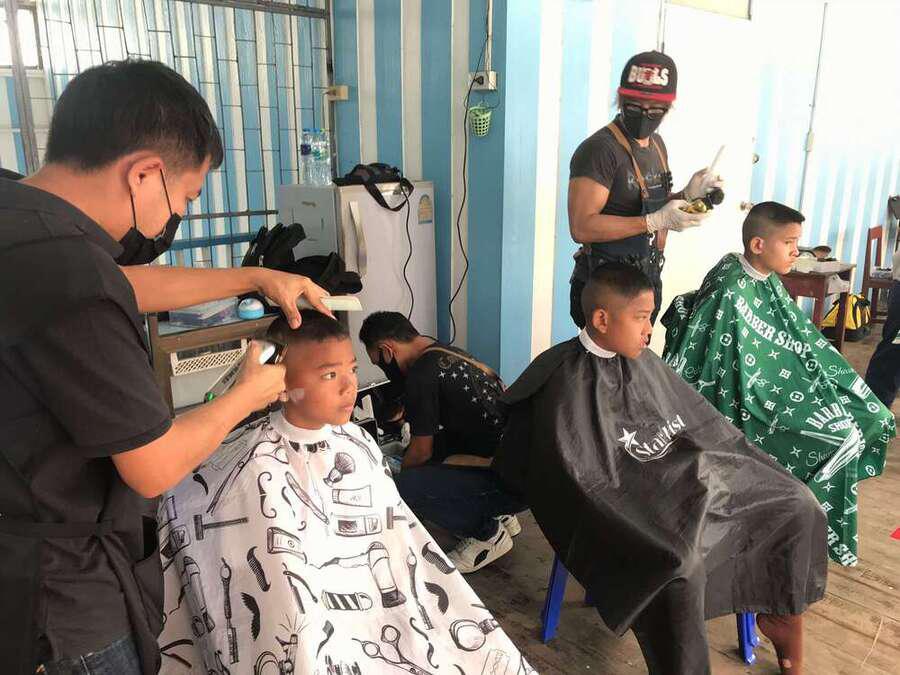 นักศึกษาที่เรียนตัดผมมาเป็นจิตอาสาตัดผมให้กับนักเรียน S:0