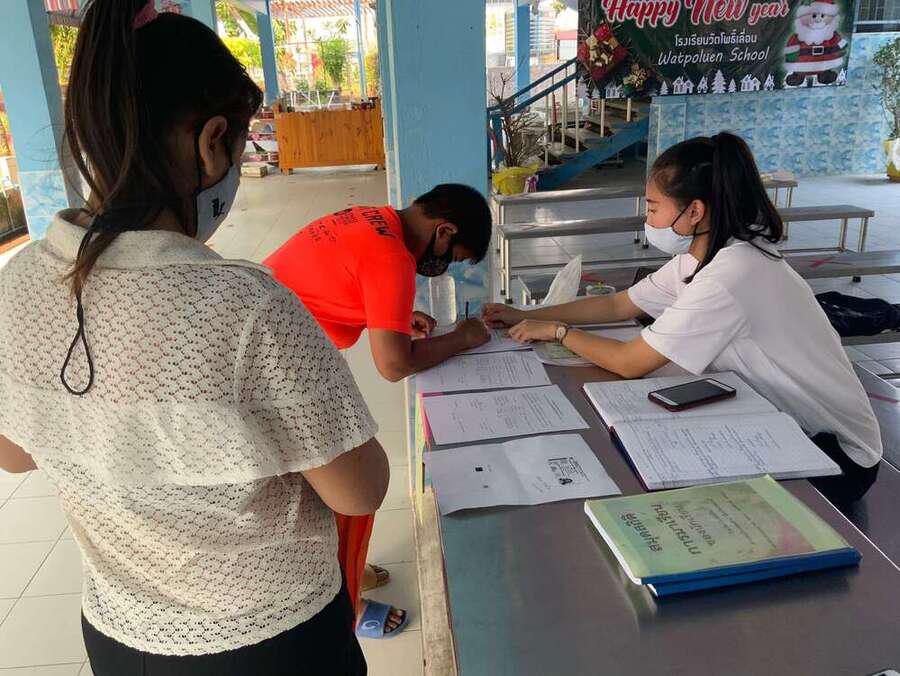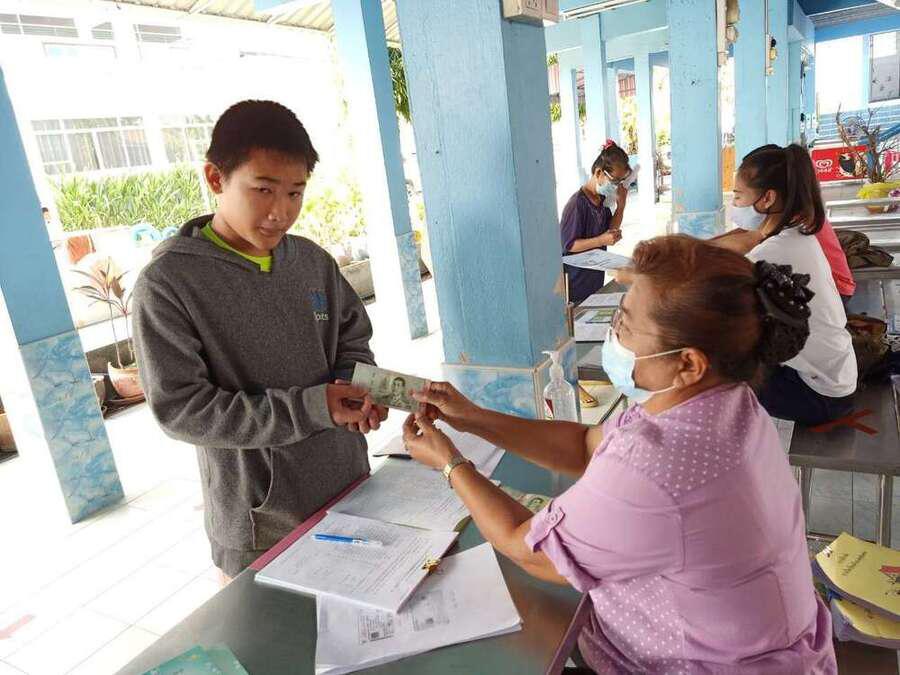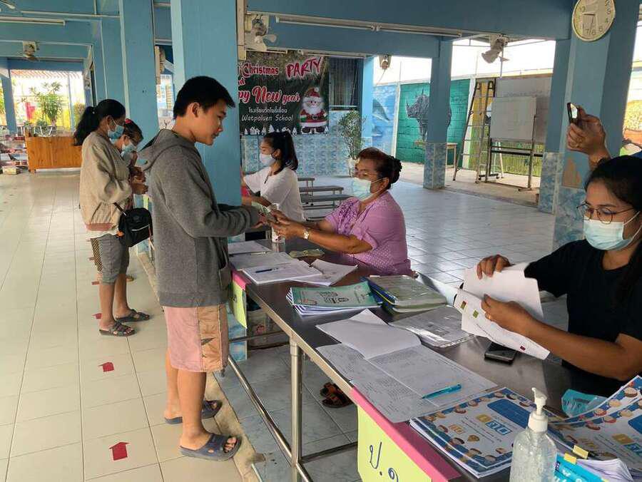 การรับเงินค่าอาหารกลางวันและรับ - ส่งเอกสารแบบฝึกหัด